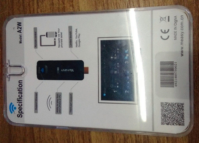 A2W是一款功能强大的家庭多媒体分享投影棒,通过无线连接,可以完成手机、平板、PC上的屏幕完美切换到HD TV大屏幕,真正实现最佳的多屏互动体。通常A2W可以把智能手机的照片、音乐、电影以及3D体感游戏快速投影到高清电视上。 HDCP认证 HDMI认证 支持的设备 没有经过HDCP 认证的产品,不能使用Miracast 功能的。 美誉每台A2W手机投影棒都集成HDCP TX和HDCP RX 密码, 这就最有效的保证 A2W对各大品牌手机以及PAD的Miracast 功能兼容性。 主要功能 1. EZAir: A2W的EZAir功能相当于苹果的Airplay 功能,可以让你的iPhone, iPad, or iPod touch 上所播放的电影、图片、音乐完全投影到HDTV高清大屏幕上。 2. EZCast A2W的EZCast功能,可以把手机、电脑或其他设备上的流媒体内容无线传送到电视上。包括音乐、图片、电影、文本等流媒体。用户也能把在Chrome浏览器上浏览的内容投影到电视上。包括Youtube, Netflex 等高清网络视频; 优酷视频,Youku,搜狐视频等在线视频分享; 同时也支持 Office/PDF/Mac OS Page 文档投影分享。 3. Miracast A2W强劲的镜像功能功能,可以将手机、平板电脑或者笔记本电脑的界面镜像到HDTV电视大屏幕。在玩3D体感游戏时,你甚至可以拿着平板电脑当做方向盘,然后看着大屏幕玩游戏,炫酷非常。 | |