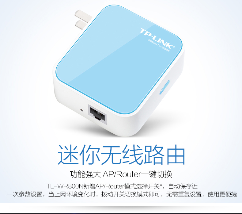 | 全新带包装 TP-LINK TL-WR800N 迷你无线路由器300M穿墙有线转wifi即插即用AP 60包邮 |